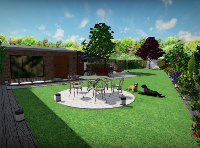 Conception 3D d'un jardin pensé comme un véritable lieu de vie Pour